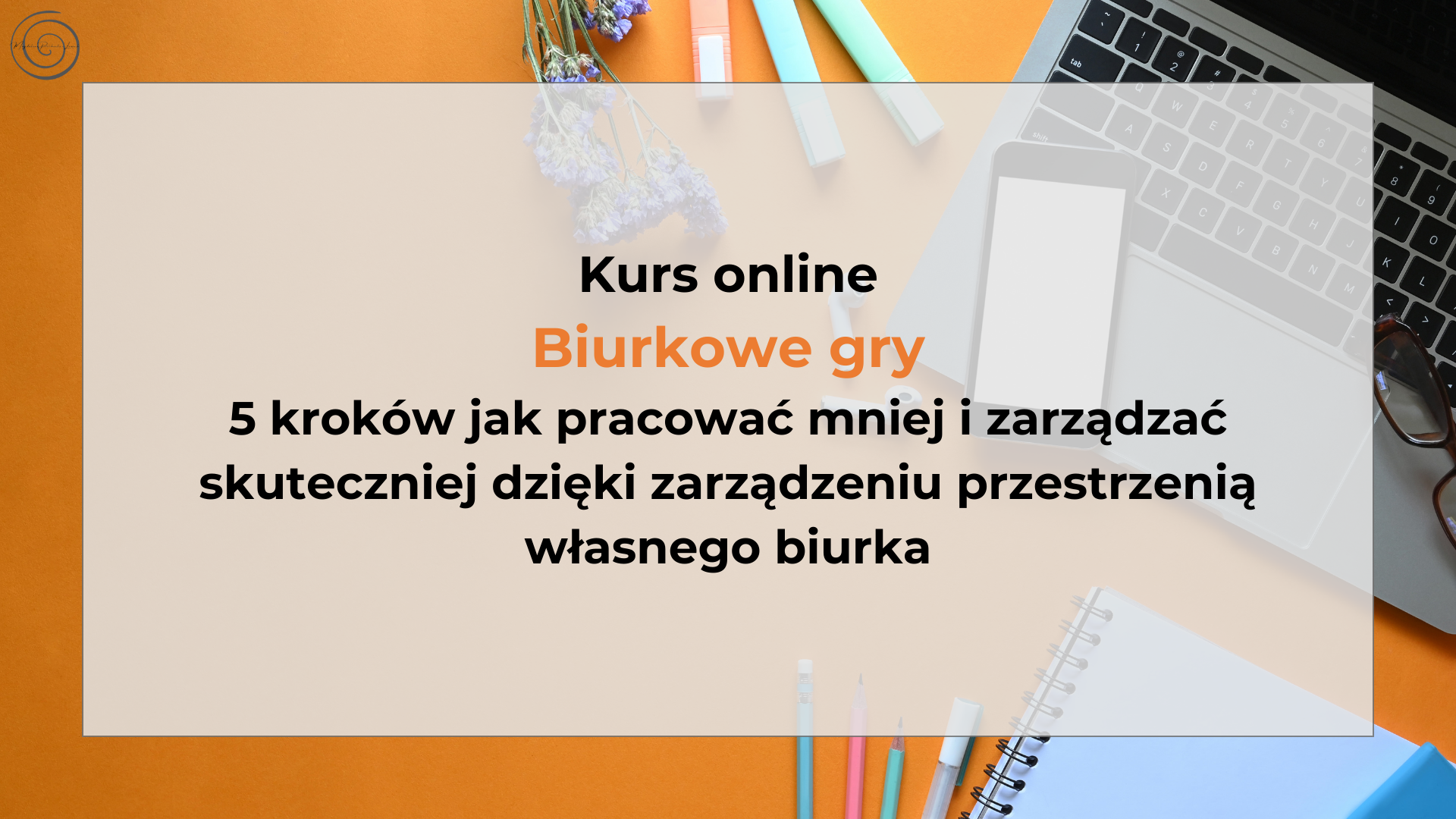 W oczekiwaniu na nasze szkolenie zapraszam Cię do zakupu wyjątkowego kursu online "Biurkowe gry. 5 kroków jak pracować mniej i zarządzać skuteczniej dzięki zarządzeniu przestrzenią własnego biurka" w cenie 47 PLN zamiast 247 PLN.